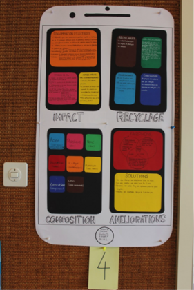 Durant trois jours, nous avons effectué des recherches sur nos téléphones portables, car tout le monde en possède un. Nous avons constaté qu’ils affectent de diverses manières le climat en consommant, par exemple, de génération en génération, toujours plus d’énergie et qu’ils contiennent beaucoup de matières premières critiques comme le lithium ou les terres rares.