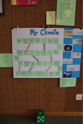 Le jeu « My Climate » est un jeu pédagogique et n’est pas électronique; l’avantage de cela est qu’on peut se mettre autour d’une table. C’est un jeu amusant et drôle. On peut jouer entre amis ou en famille. Tout en jouant, nous apprenons beaucoup de choses, par exemple, sur le lien entre émissions de CO₂ et réchauffement climatique. Ce jeu est pour tous âges, mais il est plutôt conseillé aux 12 ans et plus à cause de son contenu qui s’adresse à un public averti. Ce jeu permet de sensibiliser ainsi que d’instruire les gens sur un phénomène inquiétant: le réchauffement climatique.