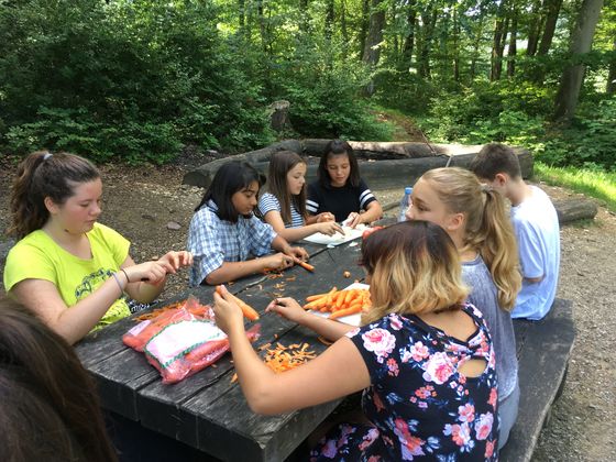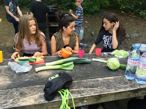 Tischen verteilt. Es wurden Gruppen eingeteilt, die entweder Gemüse rüsten