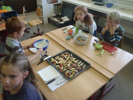 - der Transport zum Schulzimmer ist praktisch CO₂-frei, weil die Kinder die Kartoffeln tragen