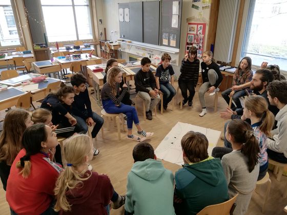 Im Vorfeld haben die Schülerinnen und Schüler während einer Lektion verschiedene Klimatipps gesammelt und sich anschliessend für ihren persönlichen Favoriten entschieden. Danach haben sich die Schülerinnen und Schüler mit Hilfe eines «Storyboards» überlegt, wie sie ihren Klimatipp in einen kurzen Kettenfilm übersetzen können. Nach dem Einüben des Kettenfilms haben uns zwei Projektmitarbeiter von myclimate besucht, um die Klimatipps zu filmen und eine lehrreiche Impulslektion zu halten.