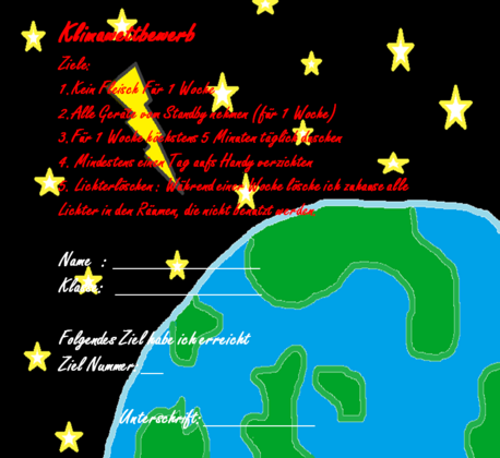 Wollen die Kinder beim Wettbewerb mitmachen, müssen sie eines der vorgegebenen Ziele zum Energiesparen während einer Woche umsetzen.